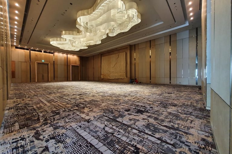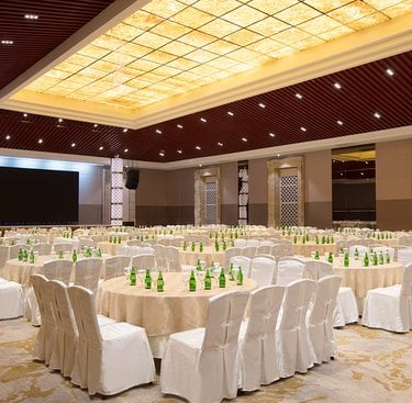 Fasilitas: Grand Ballroom yang mewah dengan langit-langit tinggi dan teknologi audio-visual terkini.